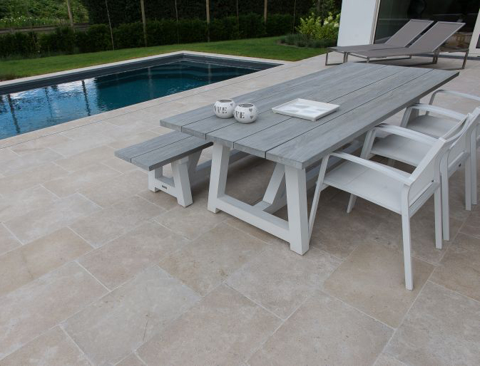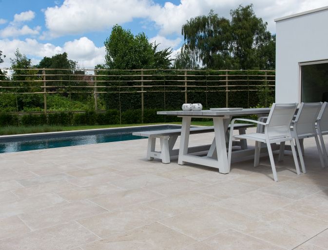 Le Simyra est une pierre calcaire dure de couleur beige. Utilisable aussi bien pour la terrasse que pour la salle de bain ou le séjour.