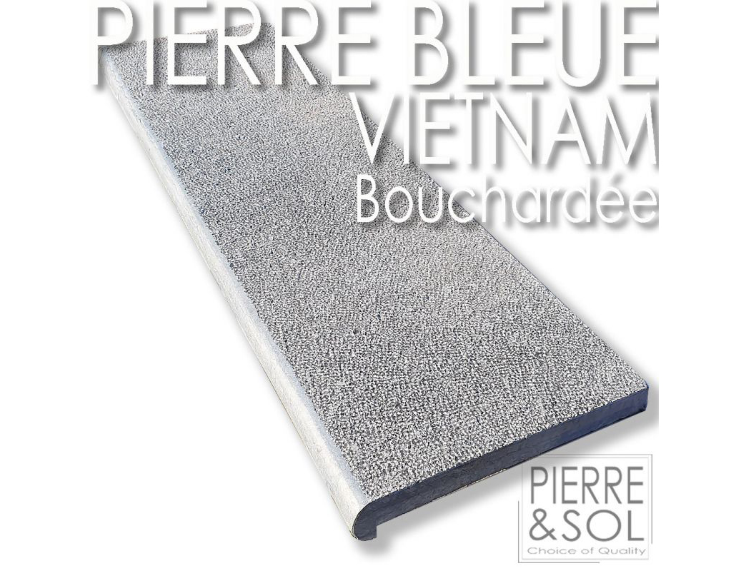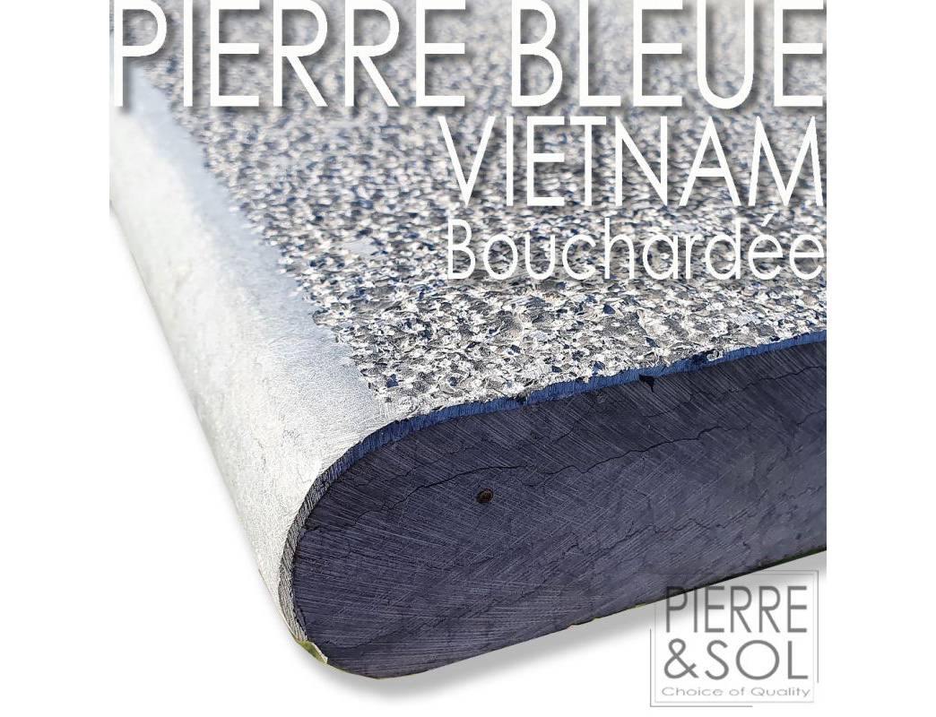 Margelle en Pierre Bleue du Vietnam - Bouchardée - Retombée - Bord arrondi 180° adouci