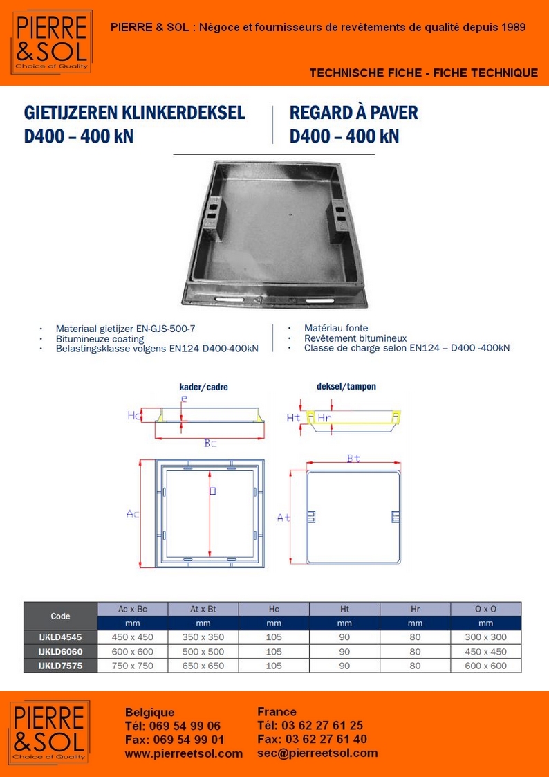 | Coperchio di spianare in ghisa D400 | 75 x 75 cm | 972,77 £ | 1.167,32 £ | DES IJKLD7575 | 9145385970423 | Arrivage |