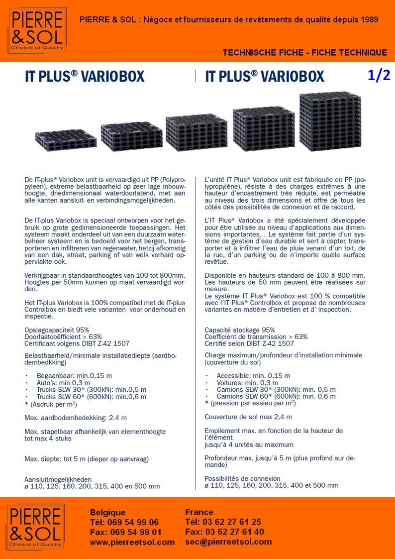 Variobox IT Plus Benor - Sistema de Captura e Infiltração - Déclinaisons, dimensions, prix, références